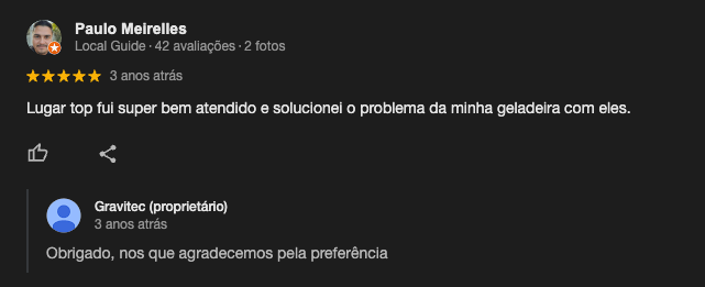 A Gravitec Refrigeração garante qualidade em todos os serviços prestados para nossos clientes. Ao finalizar a manutenção ou reparo, é entregue pelas mãos do técnico ao cliente, um documento onde contém informações relevantes como data e descrição do serviço prestado. Sendo de extrema importância para confirmar de fato a manutenção feita no eletrodoméstico. Se necessário, o cliente tem o prazo de 90 dias para solicitar a garantia da manutenção prestada. O técnico irá a residência do cliente dentro de 3 dias após o contato, e será avaliado se houve algum problema com o serviço executado. Caso seja identificado, todo o trabalho será refeito sem novos custos.